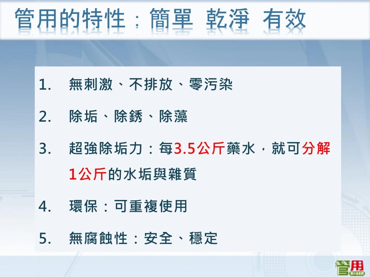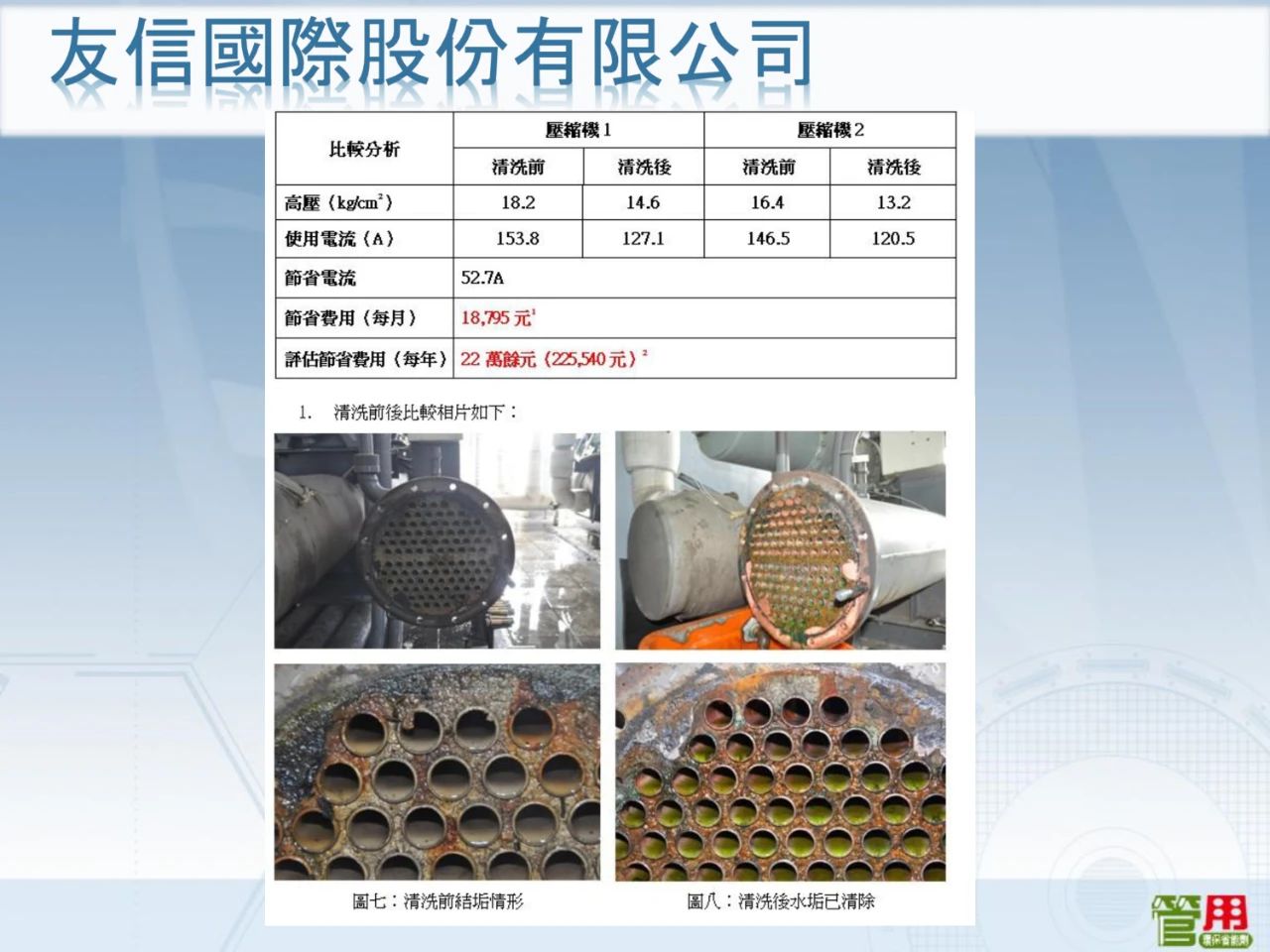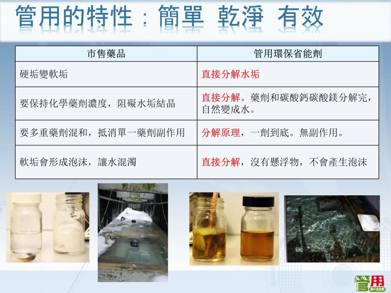 优先提供一个干净的水质环境,以供注塑机作业添加“Sanergy管用环保省能剂”分解系统内的污垢,净化水质清除已经积累的污垢,以渐进的方式提升效率