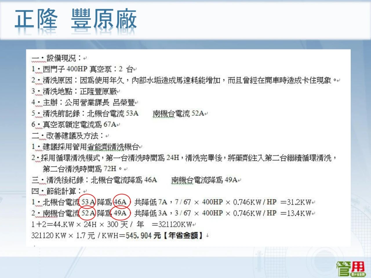 ③配合展运工务,深入了解运转中设备温度过高等不正常的现象。采取专案清洗工作。