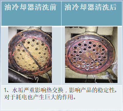 结垢减少,油冷却器不堵塞,节省设备更换的费用